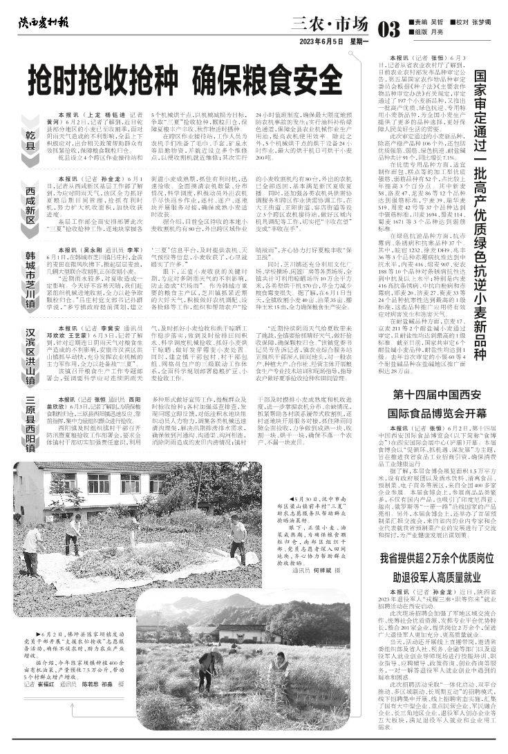 抢时抢收抢种 确保粮食安全