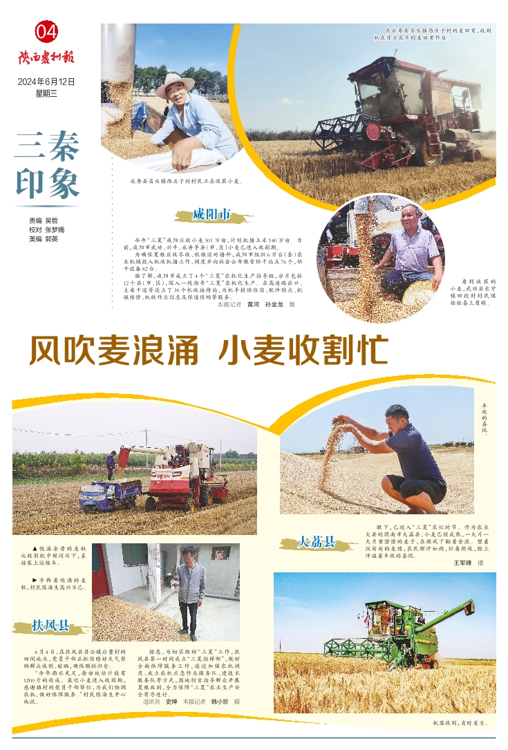 风吹麦浪涌 小麦收割忙 咸阳市
