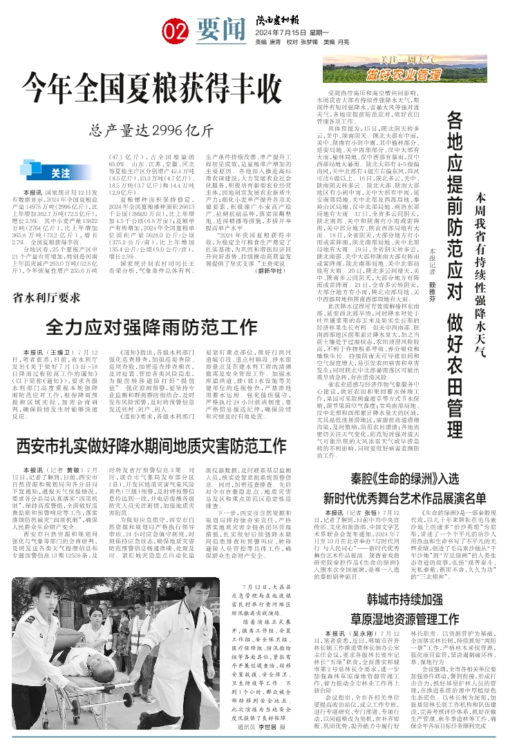 各地应提前防范应对 做好农田管理