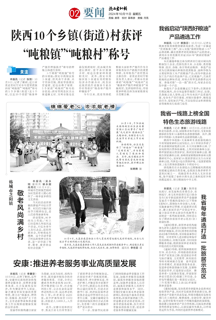 陕西10个乡镇(街道)村获评“吨粮镇”“吨粮村”称号