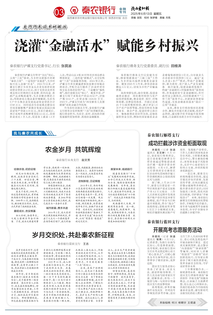 秦农银行雁塔支行 成功拦截涉诈资金柜面取现