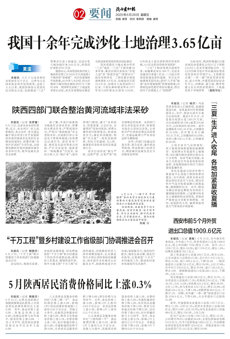 我国十余年完成沙化土地治理3.65亿亩