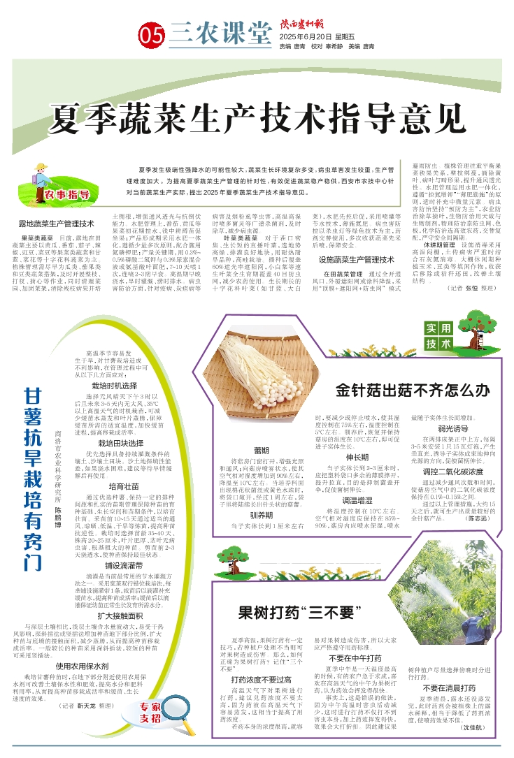 夏季蔬菜生产技术指导意见