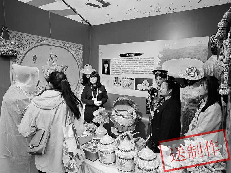 乡村工匠培育成果展以“匠美乡村、艺兴富农”为主题,邀请20名乡村工匠代表,展示传统手工艺的魅力。洛南县草编非物质文化遗产代表性传承人屈军侠向观众展示草编技艺,雨水从帐篷边缘滑落,她手中的动作却丝毫不受影响。