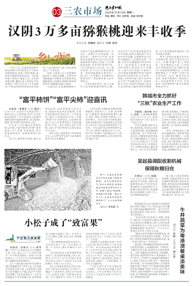 “富平尖柿”是制作富平柿饼的优质原料,其果实个大、肉厚、色泽鲜亮、含糖量高,制成的柿饼兼具“霜白、底亮、质润、味香甜”的特点,入口绵甜爽口。2013年富平尖柿获原国家农业部国家农产品地理标志登记保护,2020年入选全国名特优新农产品名录。目前,富平县尖柿种植面积达36万亩,鲜柿产量稳定在50万吨。柿子全产业链年产值突破85亿元,带动13万柿农实现增收,成为名副其实的“富民产业”。