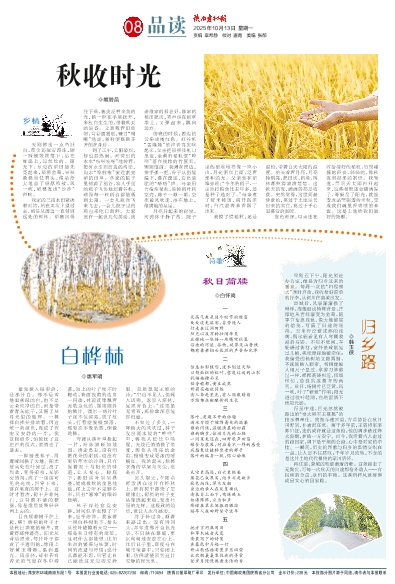 出城后,风景渐渐换了模样,高楼退成模糊背景,庄稼地从青绿渐变为金黄,随季节变换底色,像大地铺展的信笺,写满了归途的期待。玉米秆泛着成熟的浅黄,偶尔能看见有人弯腰收割的身影。不知不觉间,车轮碾过街巷,窗外景致刚晃过几帧,视线便猛地被牵住:我偏爱的杨树站立路两侧,齐刷刷映入眼帘。杨树像被人用尺子量过、拿剪刀修剪过一样,棵棵高矮相近、粗细相仿,稳稳站成整齐的两列。秋日,杨树叶已泛黄,风一吹,叶子“簌簌”作响;阳光透过枝叶缝隙,在路面洒下斑驳光影。