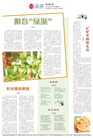 但最让我惦记的,是母亲还会配一碟凉拌萝卜丝。秋天的萝卜甜中带辣,母亲切成细丝,用盐稍腌,挤掉水分,再点几滴香油和调料。吃时要先咬一口抹了辣子油的烤馒头,再夹一筷子萝卜丝。馒头的焦香热辣与萝卜的清脆甘甜,在嘴里奇妙融合。我常一手举着馒头,一手拿着筷子,吃得鼻尖冒汗。