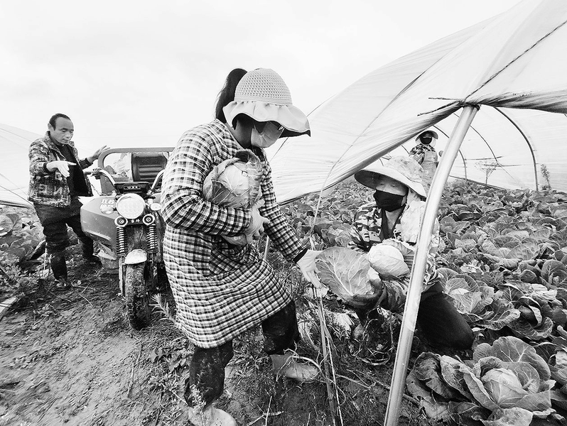 连日来,永寿县多措并举应对持续阴雨天气,组织农技人员指导农户抢抓降雨间隙开展玉米抢收作业,引导蔬菜种植户及时采收成熟蔬菜,保障市场蔬菜稳定供应。图为10月19日,永寿县马坊镇寨子村村民采收甘蓝。