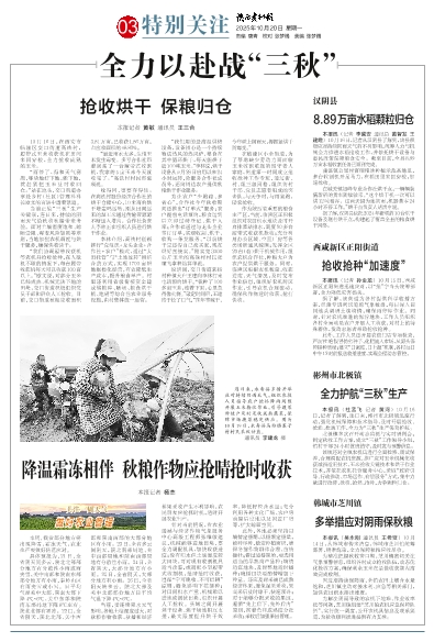 本报讯(吴永刚 通讯员 王希贤)10月14日,从韩城市传来消息,韩城市芝川镇统筹部署、精准施策,全力保障秋粮应收尽收。