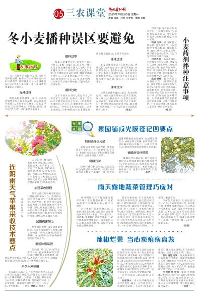 加大清园力度,重视病害监测防治,已采收完成的早中熟果园要及时喷施广谱性杀菌剂,做好早期落叶病、轮纹病、炭疽病等病害的防控防治工作。
