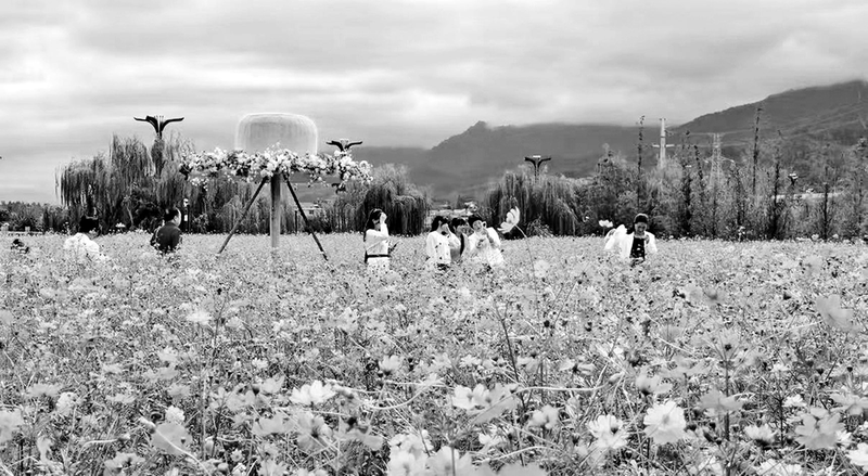 金秋十月,汉阴县花月湾迎宾公园10亩硫华菊竞相绽放,吸引不少群众前来赏花拍照。