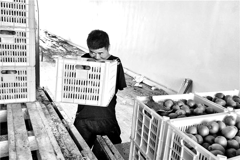 “宁波,今天收你家桃啊。”“是的,嫂子,今天一摘就完了。”……10月15日,田宁波走进果园,脖子上挂着一根宽绳,绳子两端各系着一个小铁钩。今天,他雇了十几名村民,把最后一批海沃德猕猴桃摘下来,然后装车发走。