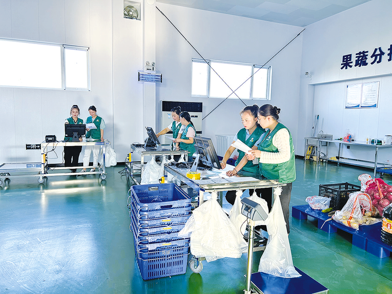 “马咀村持续完善“公司+农户+市场”经营模式,打造“一村一品”特色品牌。2023年,马咀村成立生鲜供应链平台,涵盖蔬菜、水果、粮油、干货、副食等农产品种植、筛选、加工、包装、储存、销售、配送等业务。目前已与铜川市50多所学校、企事业单位签订供应合同。”李雷说。