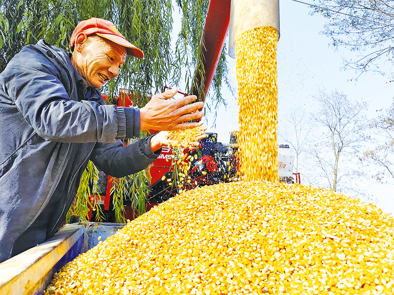 连日来,永寿县群众抢抓晴好天气,利用人力、收割机在田间收获谷子、豆子、玉米等秋粮作物,确保秋粮颗粒归仓。图为10月27日,永寿县渠子镇卢庄村村民在收获玉米。