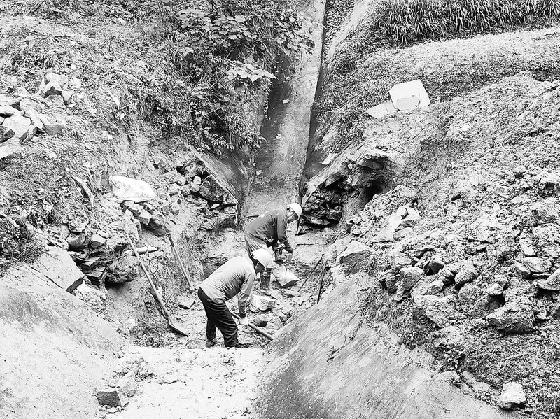 10月27日,汉中市南郑区红寺坝水库灌溉管理局组织人员抢抓晴好天气,对灌区范围内16处塌陷淤积和1.2公里主渠道进行抢修。图为新集镇流珠堰管区渠道抢修现场。