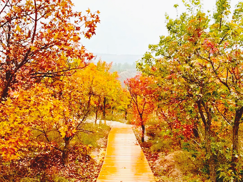 风过时,千万片枫叶同时颤动,各色红浪从山巅滚向谷底,又从谷底翻涌而上,“哗啦啦”的声响里仿佛揉着原生态陕北调子,漫开《黄河号子》的粗厉呐喊,和山脚下那奔涌的黄河涛声融在一处,汇成了一曲气势磅礴的乐章。