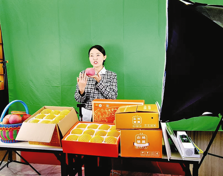“家人们看过来!子长山地苹果,日照足、温差大,咬一口嘎嘣脆,甜到心坎里!”11月17日,子长市新型农业经营主体服务中心的直播间里,主播热情推介当地特产,屏幕上订单不断跳动。中心负责人石涛穿梭其间,一边关注直播互动,一边协调处理订单,忙得不亦乐乎。