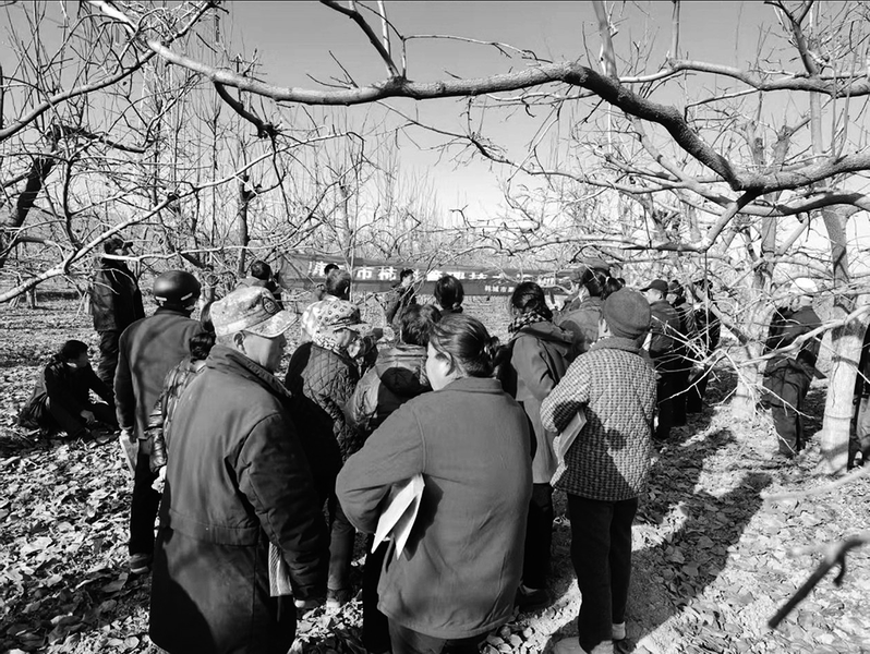 11月25日,韩城市金城街道组织技术人员在坡头村的田间地头开展柿子树冬季管理培训。 本报讯 (吴永刚 通讯员 贾亚龙)11月25日,韩城市金城街道联合市果业中心,把柿子树冬季管理“课堂”搬到坡头村的田间地头,并邀请柿子种植技术专家现场授课。此次培训摒弃复杂理论,全是农户能用得上的实用技巧。