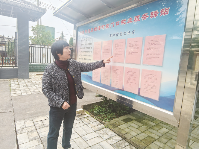 11月26日,双碌碡村党支部书记张利芳正讲就业驿站相关招工信息。