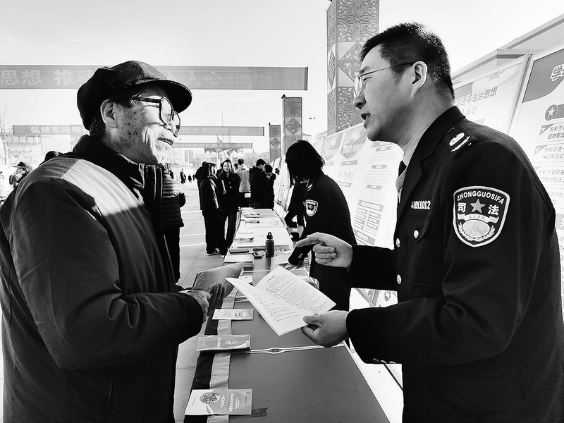 12月4日,永寿县在中心广场开展第十二个国家宪法日宣传活动。县司法局、县公安局等部门通过悬挂横幅、设立咨询台、摆放宣传展板等形式,传播宪法知识,弘扬宪法精神,提升群众法治素养。图为县司法局工作人员在向群众讲解相关法律知识。