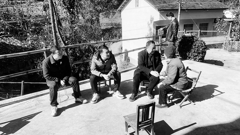 12月2日,汉中市南郑区两河镇倒庙村村干部在村民古秀清(右一)家宣讲城乡居民医疗保险政策。