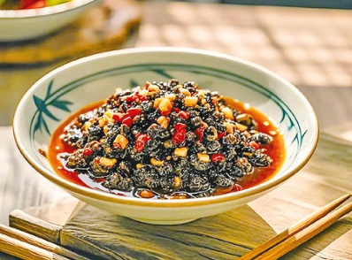 每当豆豉做出来,二姨总会做上一盘肉炒豆豉让大家尝尝鲜,再蒸上一锅热腾腾的馍。馍出锅了,轻轻用手慢慢掰开,挖上两大勺精心制作的肉炒豆豉,满满地铺在蒸馍上。咬下一大口,咸香的味道瞬间在口腔中绽放。豆豉咸香可口,酱汁缓缓渗出,浸润着每一丝馍的纤维,辣得恰到好处,吃一口,浑身都舒坦。