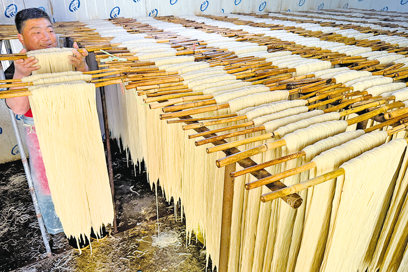 据了解,段家镇有着百余年手工制作红薯粉条的历史,一直沿用传统手法加工粉条,全部过程要经过打芡、搓揉、漏粉、捞粉、冷却、晾晒、捆扎等工序,需两三天时间才能完成。段家镇粉条以光滑筋道、口味独特,受到消费者的青睐。截至目前,全镇从事粉条加工农户达13家,每年生产红薯粉条55万公斤,成为群众致富的好产业。