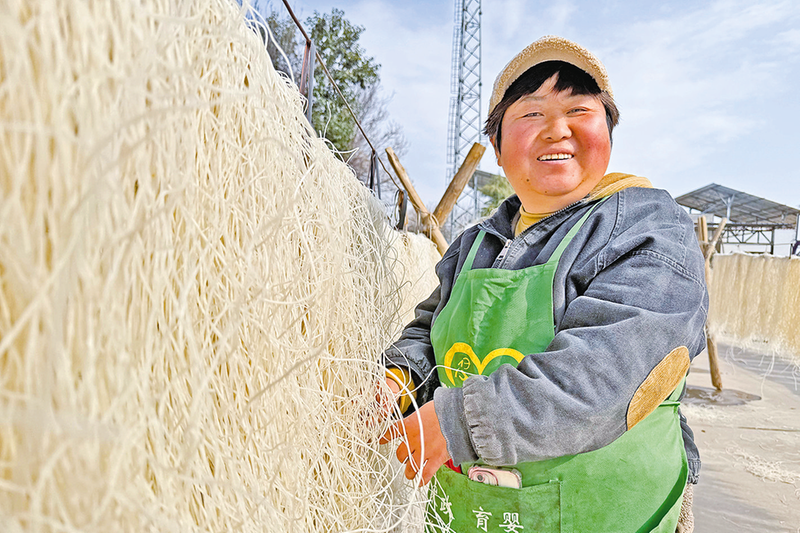 12月1日,村民正在晾晒粉条。 12月1日,走进大荔县段家镇,到处都是晾晒红薯粉条和制作粉条的忙碌场景。