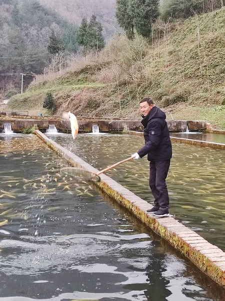 “我们这里的水,来自巴山深处的山涧溪流和地下渗水,常年温度稳定在17摄氏度左右,纯净冷凉,是养殖冷水鱼的绝佳环境。”许自贵说,他两年前承包了村集体的12座养殖池,和村里30多位村民一起发展冷水鱼养殖。