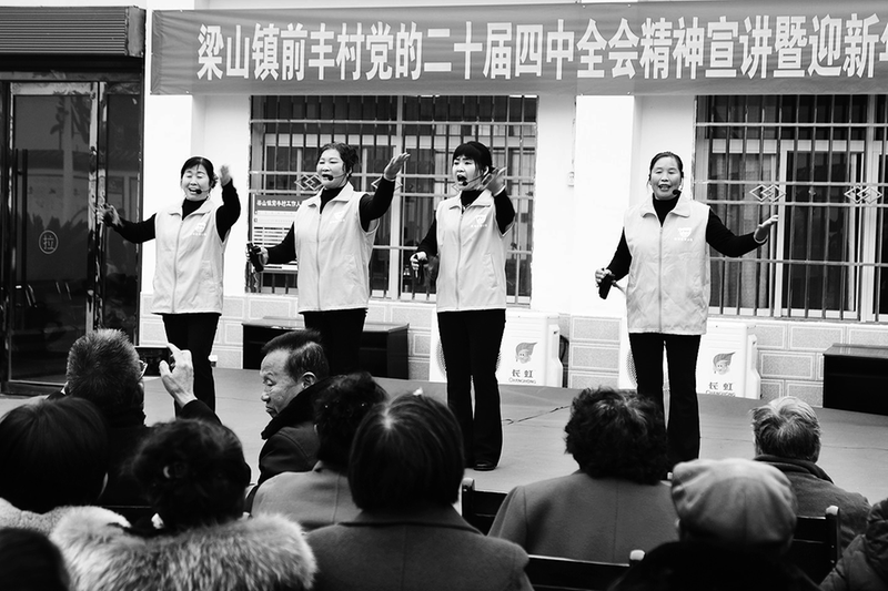 近日,汉中市南郑区梁山镇前丰村的新时代文明实践文艺志愿者,采用群众喜闻乐见的快板形式,以“理论宣讲+文艺展演”的生动融合,宣讲党的二十届四中全会精神。图为2025年12月30日,志愿者正在表演快板。