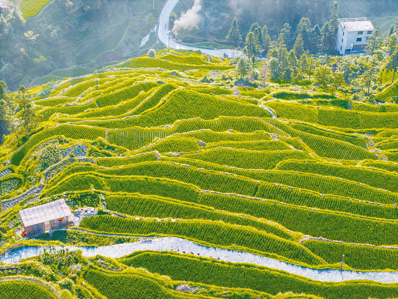 下山时,阳光正好,梯田泛着粼粼波光,像大地的年轮。这些年轮里,刻着昨天的奋斗,更生长着明天的憧憬。