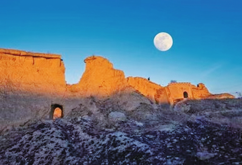 历代长城中,明万里长城规模最大、保存较好,东起辽宁虎山,西至甘肃嘉峪关,全长8851.8千米。横山长城在中国长城文化中举足轻重,作为明朝的“九边重镇”之一,地位尊崇。与八达岭不同,榆林长城更多展现的是夯土和石砌的历代长墙、古堡烽燧。横山明长城沿线还分布着规模较大的驻军聚落,被称为“三十六营堡”,其中最著名的当属波罗古堡。登临波罗古堡,环顾四周,“天苍苍,野茫茫”的塞外风光蔚为壮观。古堡前面的无定河风光,登临古堡望胡台,放眼无定河水,面对苍茫大漠,让人悠然联想起“大漠孤烟直,长河落日圆”的诗意。