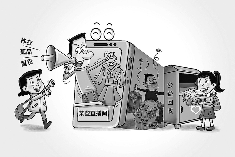 近期,一些网络直播间打着“大牌尾货”“样衣售卖”的幌子,通过“低价+话术+美颜滤镜”,使来路不明、卫生堪忧的二手旧衣成为热销款。更有不良商家以“公益捐赠”的名义,通过旧衣公益回收,骗取“爱心”、牟取暴利。
