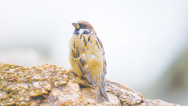 一只麻雀跃过未封的田埂