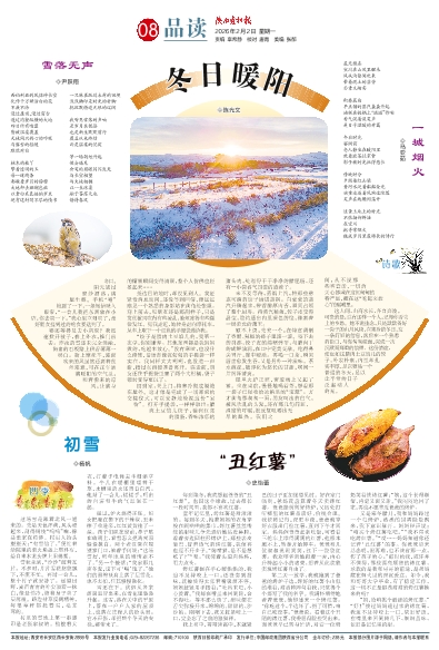 村里的雪地上第一串脚印是老张家叔的。他披着大衣,打着手电筒去牛棚添草料。牛儿在暖棚里嚼着干草,水槽里的水还冒着白汽。他站了一会儿,搓搓手,呵出的白雾和牛的气息混在一起。