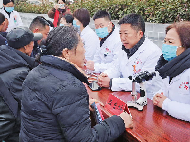 1月26日,医生为群众看病。 1月26日,寒意虽浓,但镇安县回龙镇黄土凸小区内却暖意融融。在此举行的“2026年新春走基层”文明实践志愿服务集中示范活动,让新春的暖意与文明新风吹进基层。