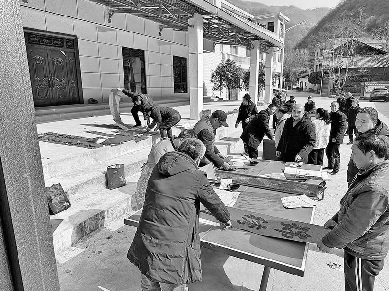 1月30日,镇安县政协在帮扶的庙沟镇双喜村开展“春联送福、年到万家”主题党日活动,为群众义务书写春联、“福”字。
