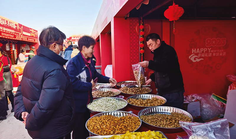 2月8日下午,西安爱菊集团园区内年味十足、人气火爆。第三届中欧班列年货节正在这里举行,哈萨克斯坦啤酒、俄罗斯椴树蜜等进口商品,与陕西苹果、柿饼等特色农产品同台亮相,品类丰富。市民们驻足挑选、品尝询价。
