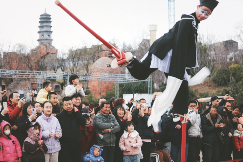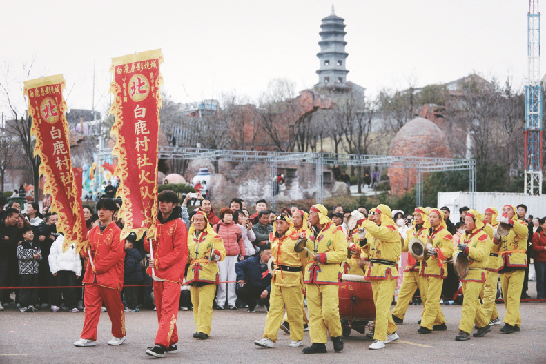 3月2日下午,位于西安市蓝田县的白鹿原影视城鼓乐震天,国家级非物质文化遗产潮汕英歌舞与底蕴深厚的关中社火同台亮相、联袂展演,一南一北两大特色民俗在这里激情碰撞、交相辉映。