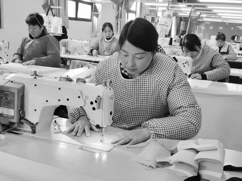 开春以来,洋县苏陕协作项目绅宝利制衣厂新增一条生产线,订单比去年增加一倍。图为3月5日,工人正在赶制衣服。