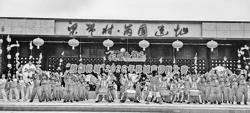 3月7日,韩城市“我要上省运‘鼓舞韩城’2026年锣鼓大赛”在昝村镇梁带村芮国遗址博物馆广场精彩上演。