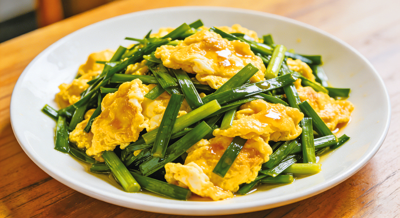 春韭的鲜香,是自然烹调出的本鲜。它从不需要繁复的调味来堆砌,越是简单的做法,越能将那股天生的鲜香发挥到极致。最是家常的韭菜炒蛋,当属唤醒鲜香的绝配。嫩韭切段,土鸡蛋打散,热油下锅,蛋液煎至金黄蓬松,再下韭段大火快炒。油星滋滋作响间,春韭的鲜香便彻底迸发,裹挟着鸡蛋的醇厚,满厨房都飘着勾人的香气。出锅时只撒少许精盐,无需多余调料,入口便是鸡蛋的软嫩与韭菜的脆鲜交织,鲜香在舌尖散开,一口下去,满齿皆是春日的清欢。