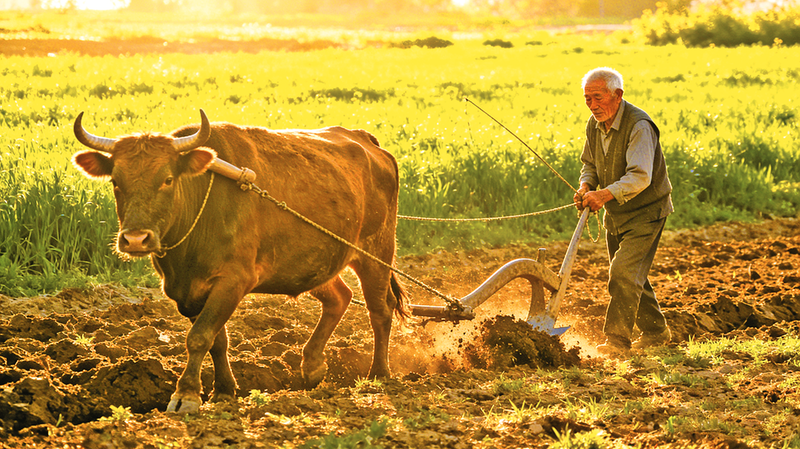 在我的童年和少年记忆中,下过一场透雨,祖父便开始将休眠了一冬的曲辕木犁和耙拿到院子当中,仔细地擦拭灰尘,专注地敲打着犁铧和耙齿上的泥土,声音不大却清脆悦耳,仿佛要将歇了一冬的犁和耙唤醒。雨过天晴,祖父将擦拭过的犁和耙靠到墙上,晒一晒太阳,吹一吹风。经过阳光一晒,春风一吹,犁和耙重新焕发了生机和活力,有了精气神。