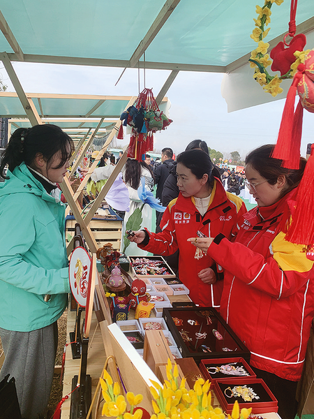 3月18日,游客在皇塘水乡风景区选购文创产品。