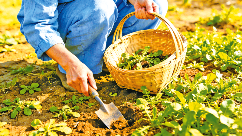 “你看,这就是油勺儿,叶子宽宽的,像勺子样子,要从根部往上挖。”母亲边说边教我,她用指尖捏住油勺儿的根部,用小镰刀轻轻一挖,“咔嚓”一声,带着嫩芽的油勺儿便被摘了下来,随手放进竹笼里,动作娴熟又自然。