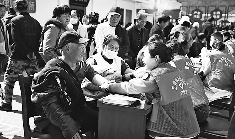 此次活动通过惠民演出、健康义诊、普法宣传、农技培训等多元化形式,传递志愿温暖,凝聚乡村振兴力量。图为医务人员为村民义诊。