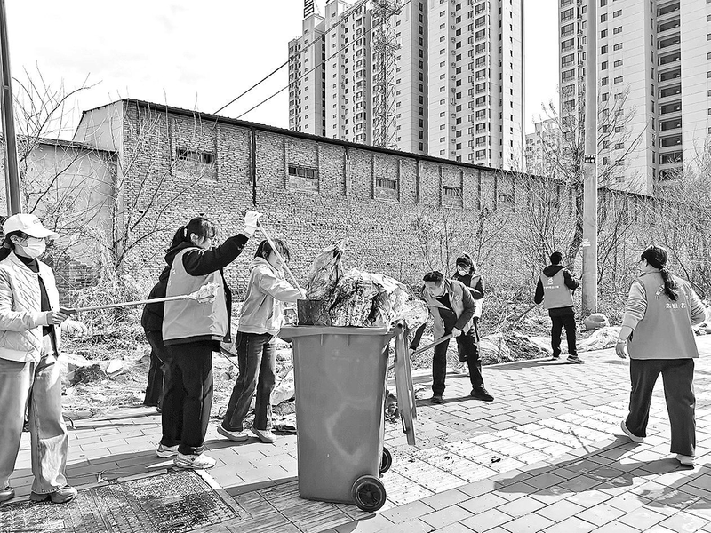 3月18日,千阳县城关镇西新区社区组织党员、工作人员及志愿者,开展“守护绿色家园 共享美好生活”环境卫生整治志愿服务活动,对新建路东侧道路内的杂草、碎纸屑、果皮等垃圾进行“地毯式”清理,全力营造干净、整洁、宜居的生活环境。图为志愿者在清理垃圾。