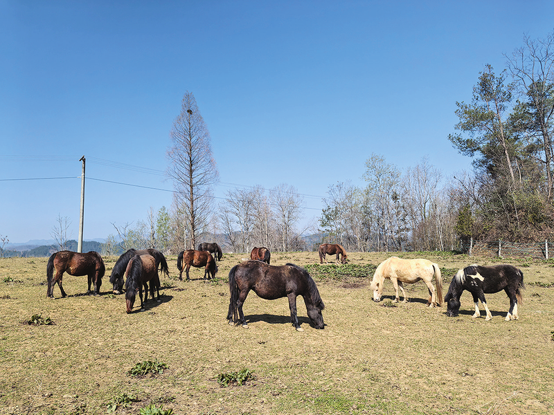 去年,国家宁强马保种场四房山基地在舒家坝镇郑家坝村建成。基地坐落在山坡上,百亩草场铺展开来,马群散落其间,悠然地啃着青草。