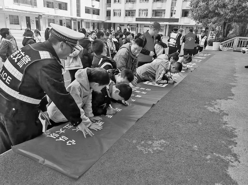 3月24日,安康市公安局交通管理支队高速公路安十执勤大队联合陕西交控白河路产管理中心、高速路政五大队,走进白河县茅坪镇中心小学,开展“安全童行”主题交通安全宣传活动,为师生送上一堂沉浸式安全课。图为活动现场。