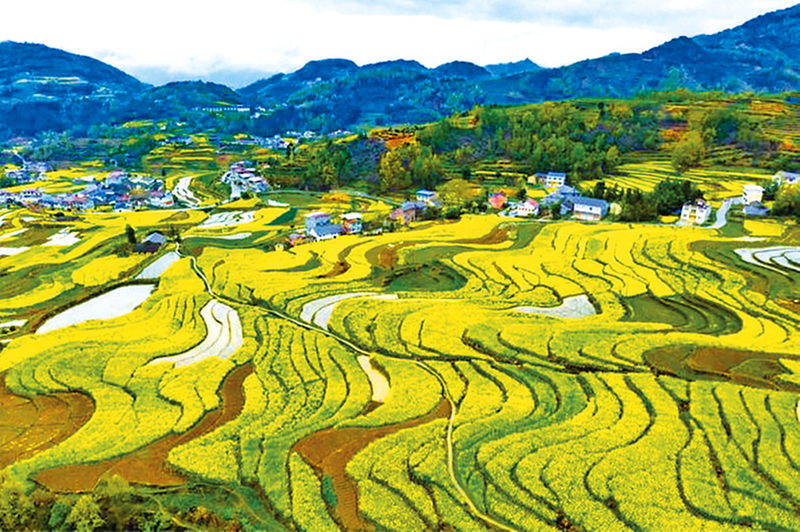 又到油菜花开的时节了。清晨,伴着“啾啾”鸟鸣醒来,鼻尖萦绕着沁人心脾的清香,总会想起家乡古梯田的油菜花。每到春天,漫山的油菜花迎风起舞,绘成金色的海洋。万顷梯田伴着山间泉水“叮咚”作响,阡陌交错,井然有序,勾勒出山林、村寨、梯田、江河、农舍相融合的农业生态系统,造就了独树一帜的梯田人文景观,是人与自然和谐共生的典范。